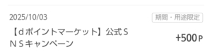 X(旧Twitter)懸賞でdマーケット様よりdポイント500ポイントが当選しました。大切に使わせていただきます。