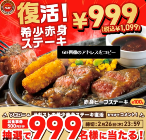 X(旧Twitter)懸賞にて、すかいらーくご優待券500円分をいただきました。